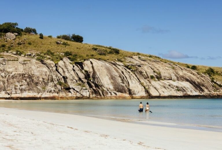 Tucked into the northernmost part of Australia’s Great Barrier Reef, Lizard Island is spectacular from the moment your chartered plane flies overhead. One of three Luxury Lodges of Australia properties in Tropical North Queensland, it blends luxury with laid-back Queensland charm. It’s a stay that encourages switching off. Laze by the pool, snorkel with turtles and other marine life, book into the spa and dine on menus that draw inspiration from the tropical environment in the open-air, onsite Salt Water restaurant. Take us back, any time.”